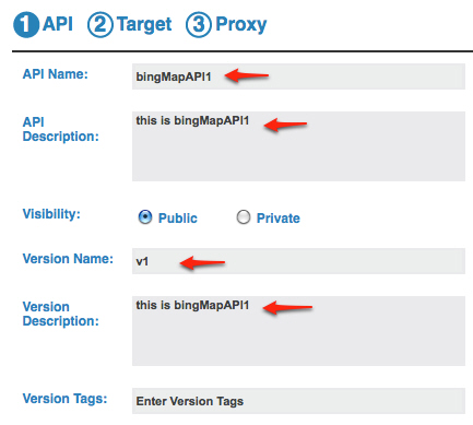 On the API page you perform the initial step of specifying an API Name, Version ID, Tags, Visibility (Public/Private), API Description, Version Description, and API Icon. This information displays on your public API page which also displays in the API search results.