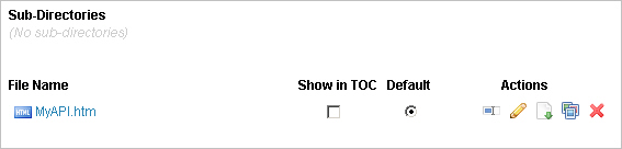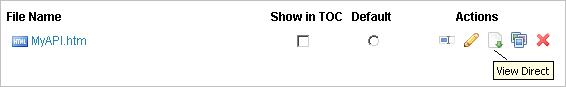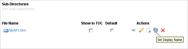 Allows you to configure the name that will display in the Documents section if the Show in Toc option is selected. When selected, a File Name popup displays where you enter the file to be renamed. |